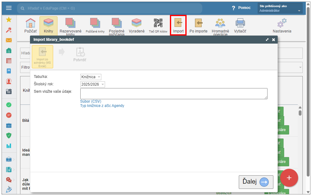 Ako naimportovať knihy do knižnice/skladu učebníc?