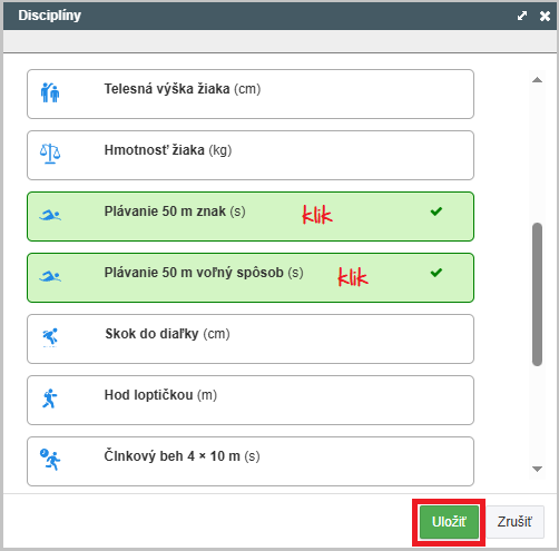 V prostredí administrácie modulu môžete vytvoriť meraciu akciu pre zvolené disciplíny. Učiteľom to uľahčí výber žiakov pri zapisovaní výsledkov.