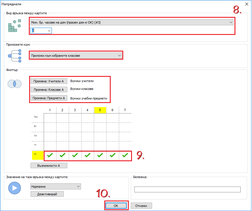 Мога ли да настроя минимален/ максимален брой часове на ден за един клас?