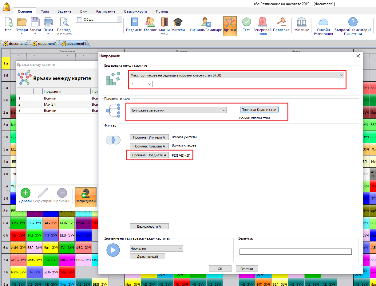 Обърнете внимание на „Приложи глобално”. Tова означава максимум 5 е приложен върху всички часове по Физическо възпитание и спорт във вашето училище.