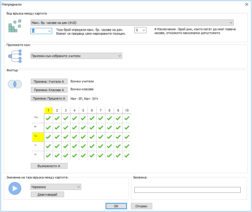 Ако обозначите няколко учители във филтъра, само тези учители ще се вземат под внимание. Останаите учители не са засегнати.