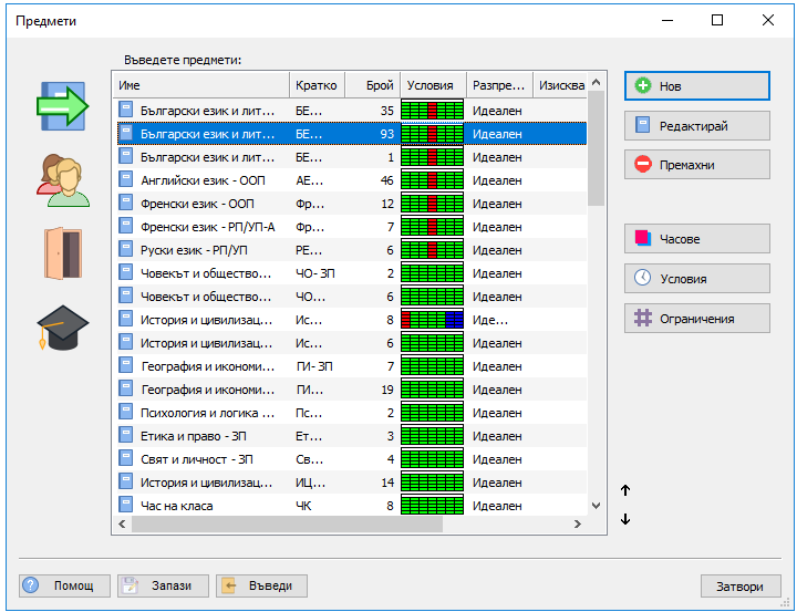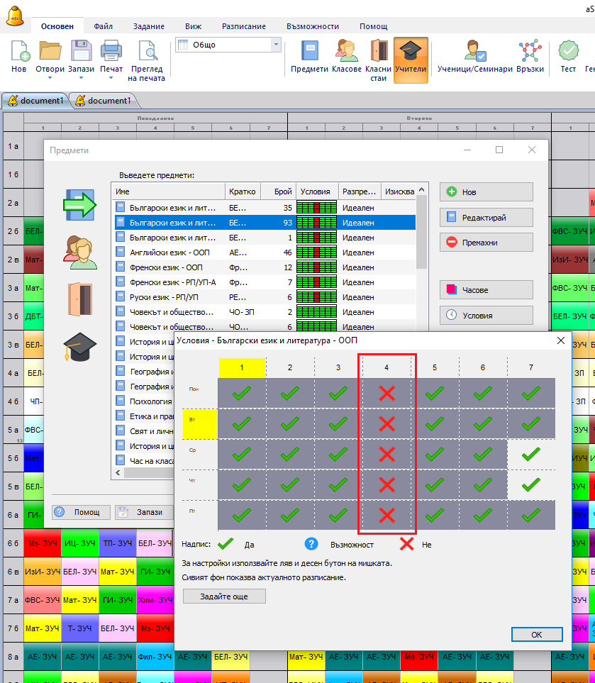 Трябва или да разрешите на някои учебни предмети, или да блокирате това учебно време като Неподходящо време за този клас. След това софтуерът ще знае, че няма учебен час в този интервал: