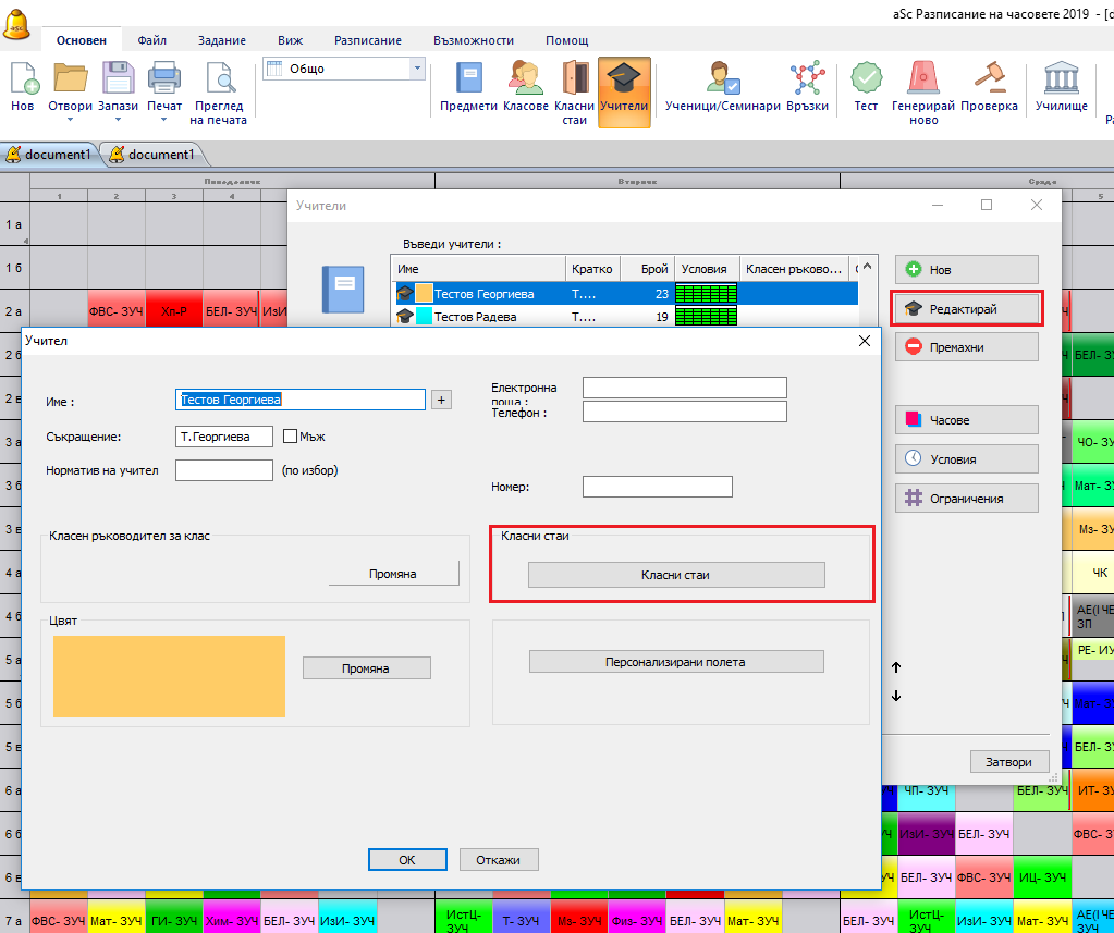 Или ръчно обозначете останалите налични класни стаи за тези часове: