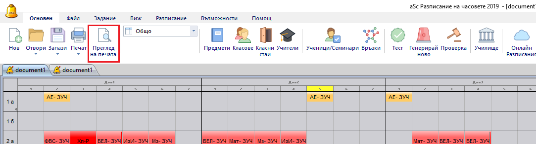 След това изберете „Принтирай таблицата с часовете“ от списъка с налични разпечатки: