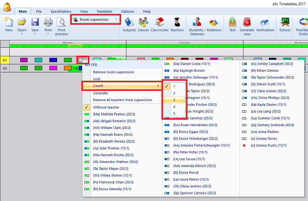 Да. Можете да определите броя на учителите, необходим за едно дежурство: