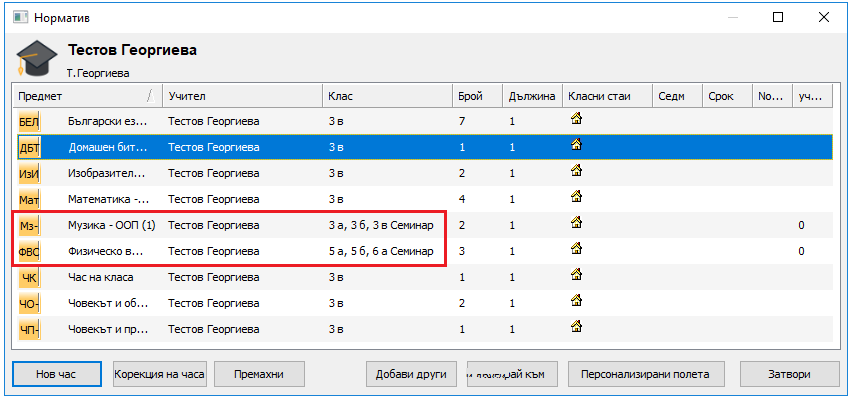 Специална ситуация се случва, когато имате два часа семинари от същия предмет в един клас.