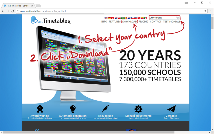 1. Abra http://www.aScTimeTables.com y elija su idioma: