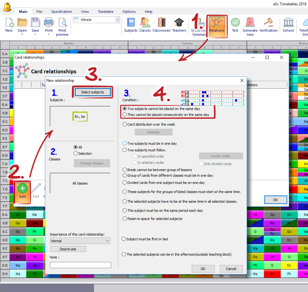 Usted puede crear una relación entre fichas que defina que dos asignaturas deben ser consecutivas (sin especificar el orden):