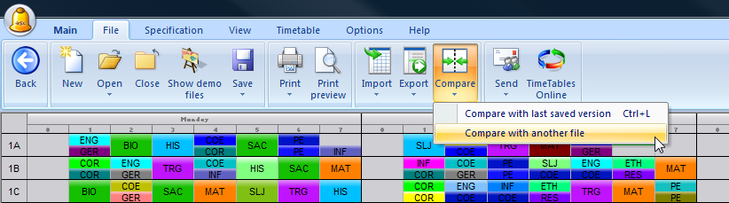 Hay dos posibilidades de comparar sus archivos de horarios. Puede encontrar ambas en el menú Archivo – Comparar.