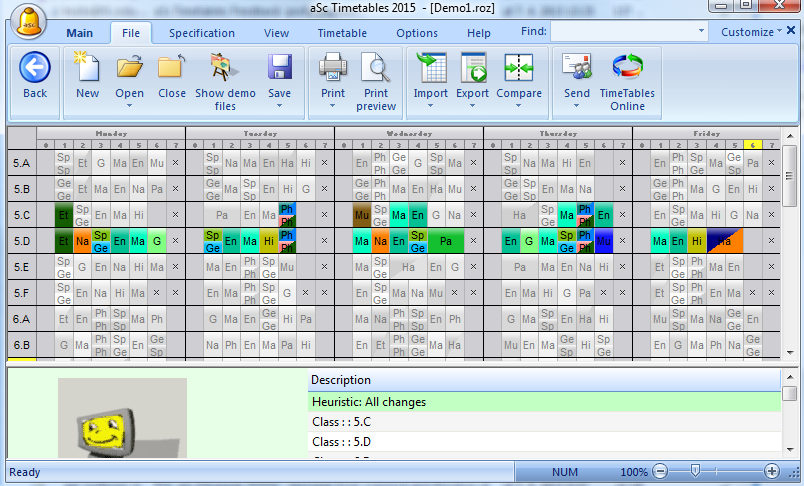 Nota: Ambas funciones mostrarán sólo los cambios en las posiciones de las fichas y nombres de asignaturas/clases/profesores/aulas. No le mostrará cambios en restricciones.