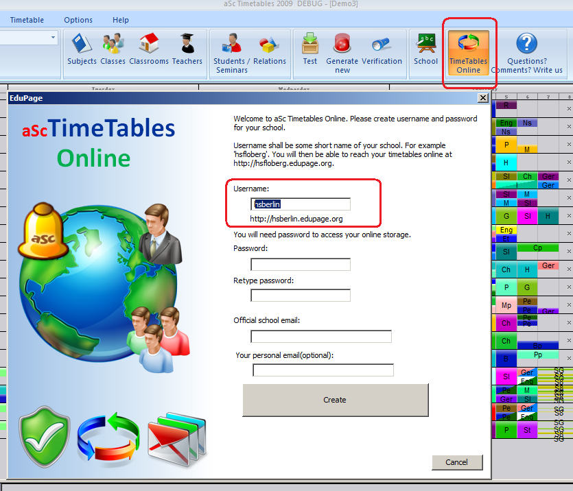 Poza nazwą należy ustawić hasło administratora, który może zapisywać, wysyłać oraz publikować plan lekcji.