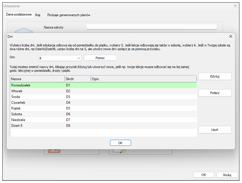 Czy można utworzyć plan na 8 dni / zmienić nazwę poszczególnych dni?