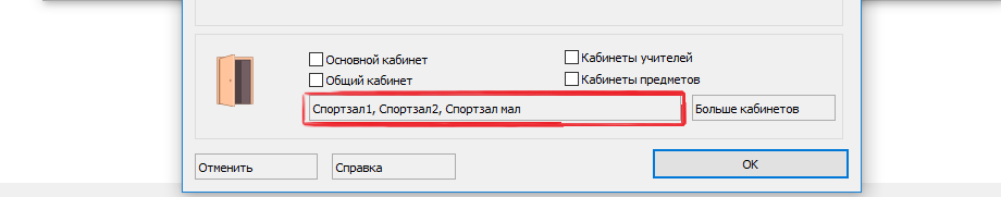 - для каждого урока мы определили, что он может проходить в любом из трех спортзалов.