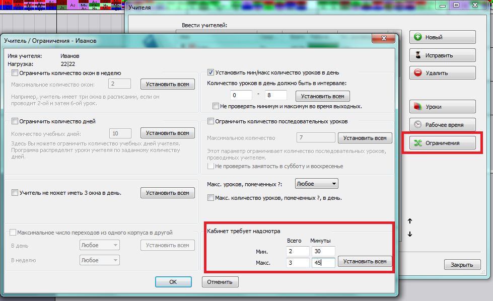Можно ли определить минимальное/максимальное число надсмотров (или минут) для некоторых учителей?
