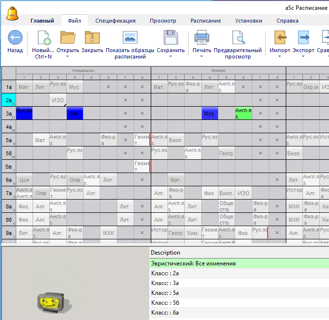 Сравнение расписаний и показ изменений - мощный инструмент работы над расписанием, особенно вместе с командой «Улучшить расписание». Вы можете добавлять некоторые новые ограничения к расписанию, составить его и тут же проверить, что в расписаний изменилось. Вы можете использовать комбинацию клавишей CTRL-L, чтобы быстро сравнить настоящее расписание с последней сохраненной версией.