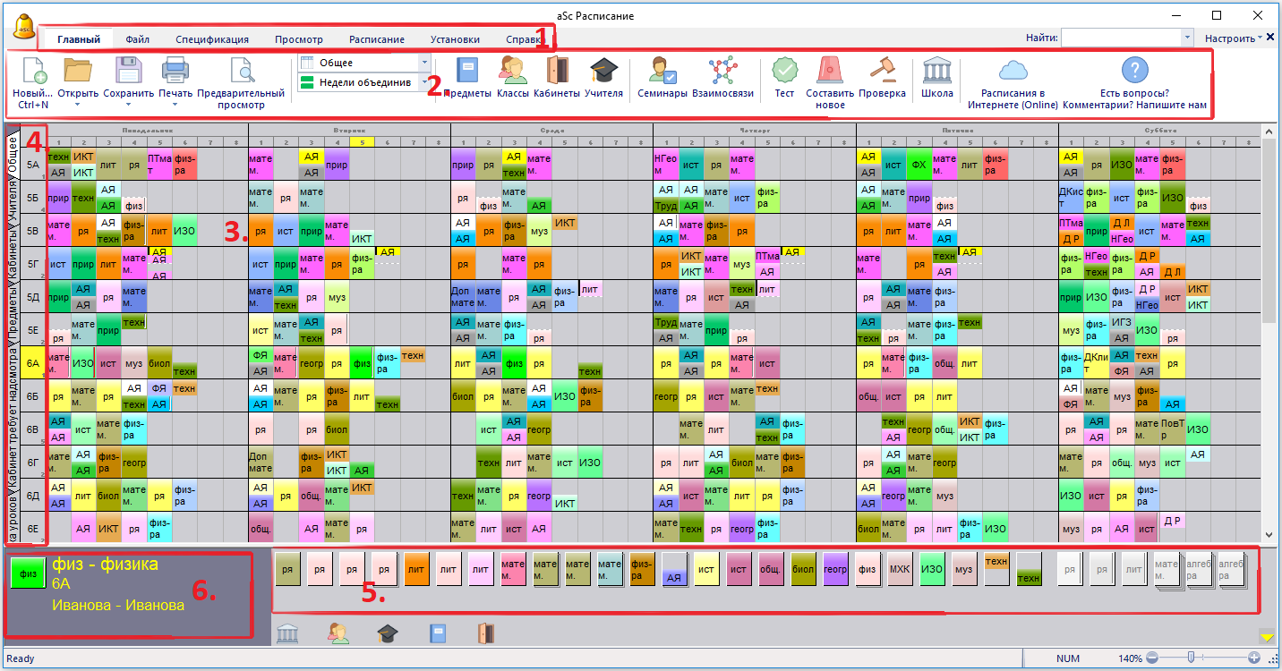 Главный экран (окно) программы aSc Расписания состоит из нескольких частей: