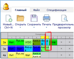 Если программа не сможет найти кабинета для урока, она пометит его белой полосой в правом краю карточки: