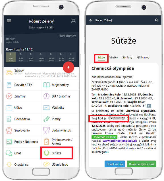 Žiak - kde nájdem svoj súťažný kód pre online test?