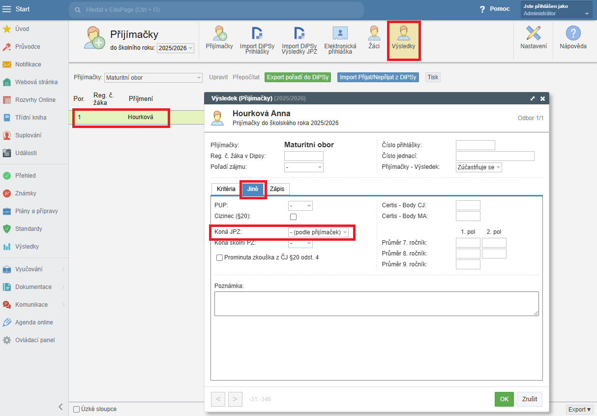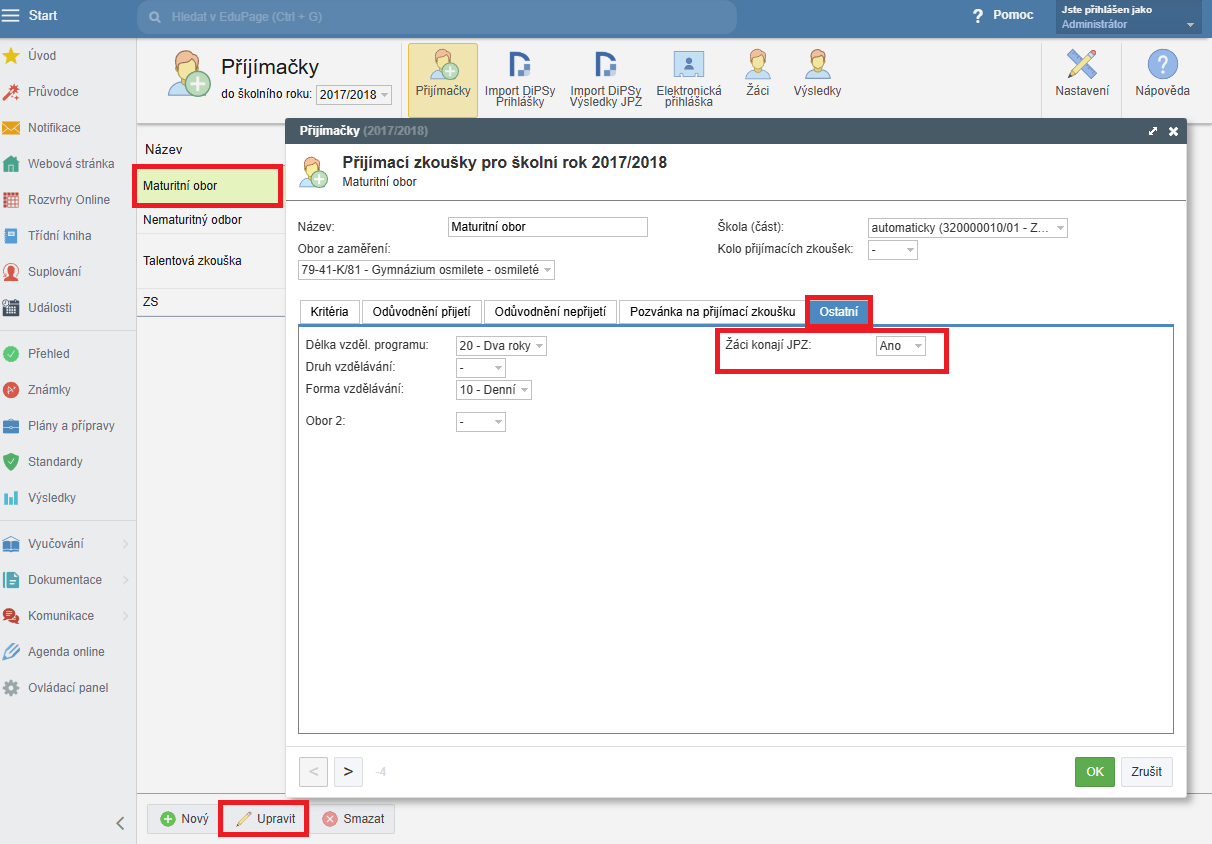 Prijímačky - Ako zadať koná/nekoná JPZ podľa oboru?