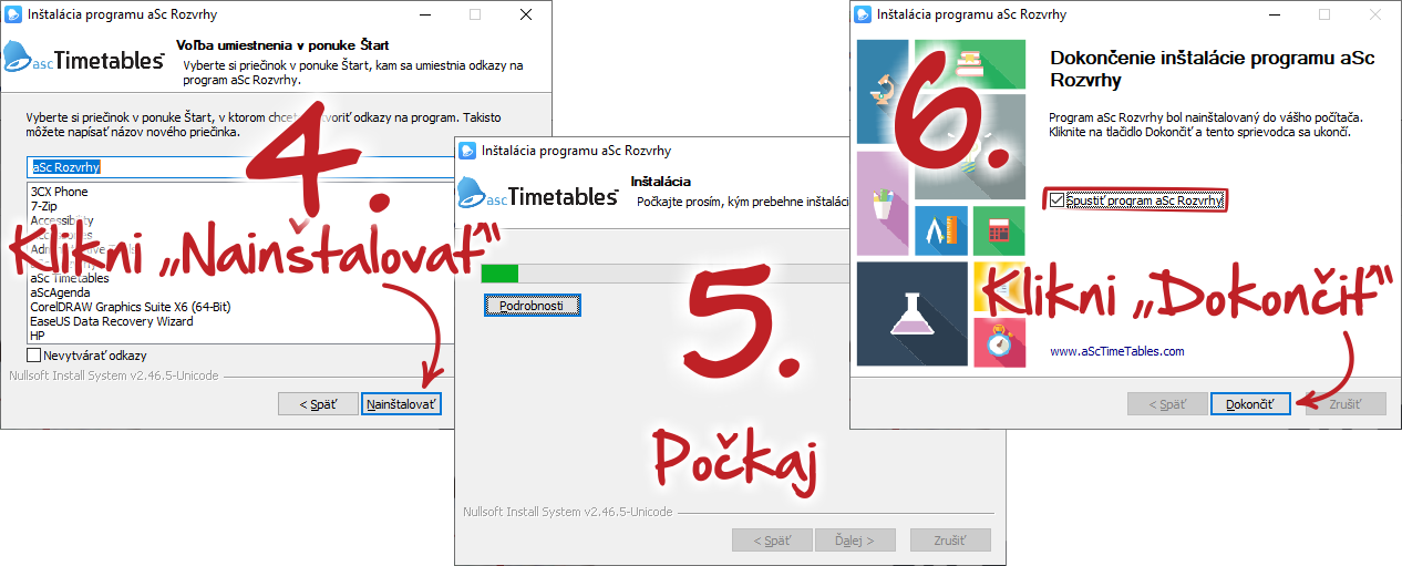 7. Kliknite Dokončiť (Finish) a následne sa spustí program aSc Rozvrhy.