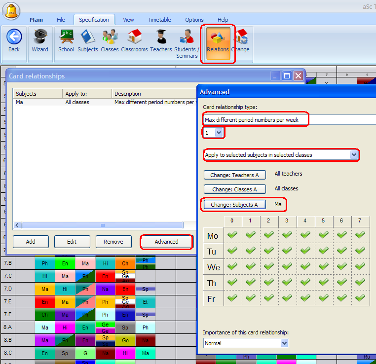 - Aplikuj na vybrané predmety vo vybraných triedach