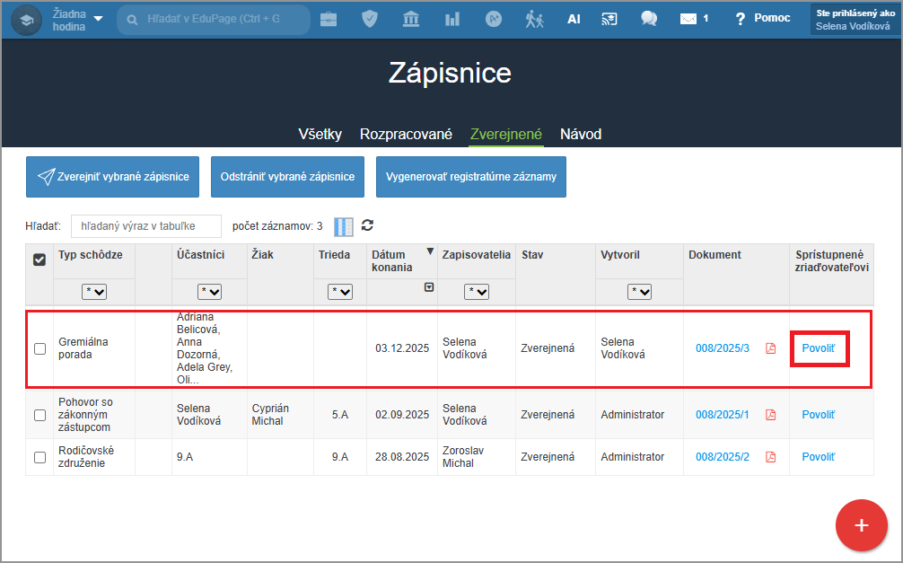 Ako môžem sprístupniť zápisnicu zriaďovateľovi?