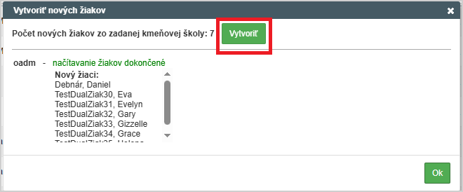 Kliknutím na tlačidlo Vytvoriť sa automaticky načítajú do vášho firemného EduPage.