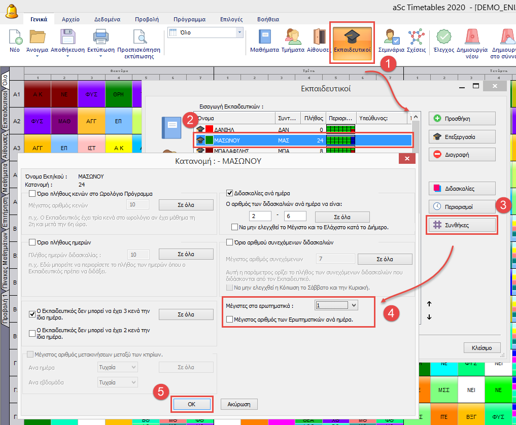 Μετά ορίστε μέγιστο αριθμό ερωτηματικών στις Συνθήκες του εκπαιδευτικού.