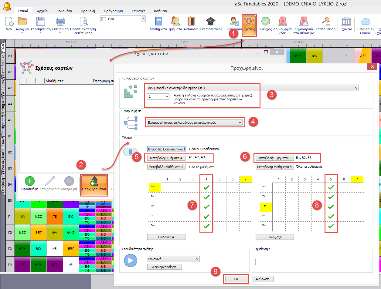 Αυτός ο περιορισμός είναι χρήσιμος σε περίπτωση που έχετε διαφορετικό ωρολόγιο πρόγραμμα για δύο βαθμίδες.