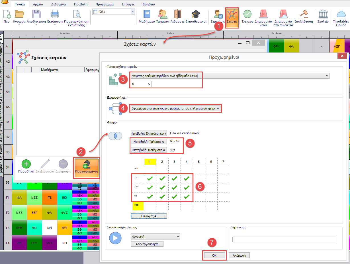 Β. Εάν δεν θέλετε να ορίσετε δεύτερο μάθημα, μπορείτε να αφήσετε τους περιορισμούς άδειους και να ορίσετε την παρακάτω προχωρημένη σχέση.