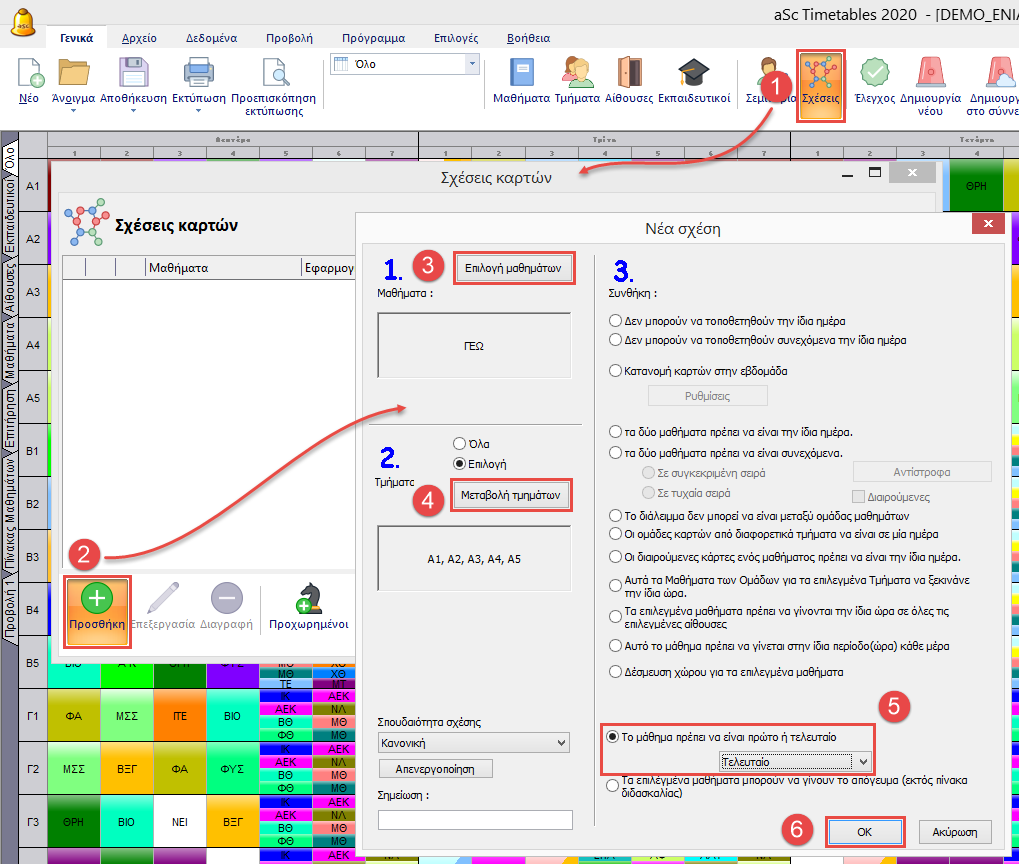 Θέλω το μάθημα της Γεωγραφίας να είναι την τελευταία περίοδο κάθε μέρα για τα τμήματα Α, Β, Γ