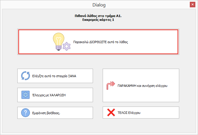 1. Ο έλεγχος μας λέει ότι υπάρχει κάποιο πρόβλημα με το τμήμα Α1. Επιλέγουμε Διόρθωσε.