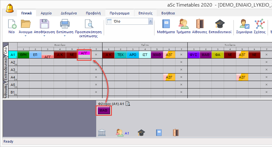 3. Δεν μπορούμε να τοποθετήσουμε την διδασκαλία στην 7η περίοδο επειδή είναι απαγορευμένη θέση.