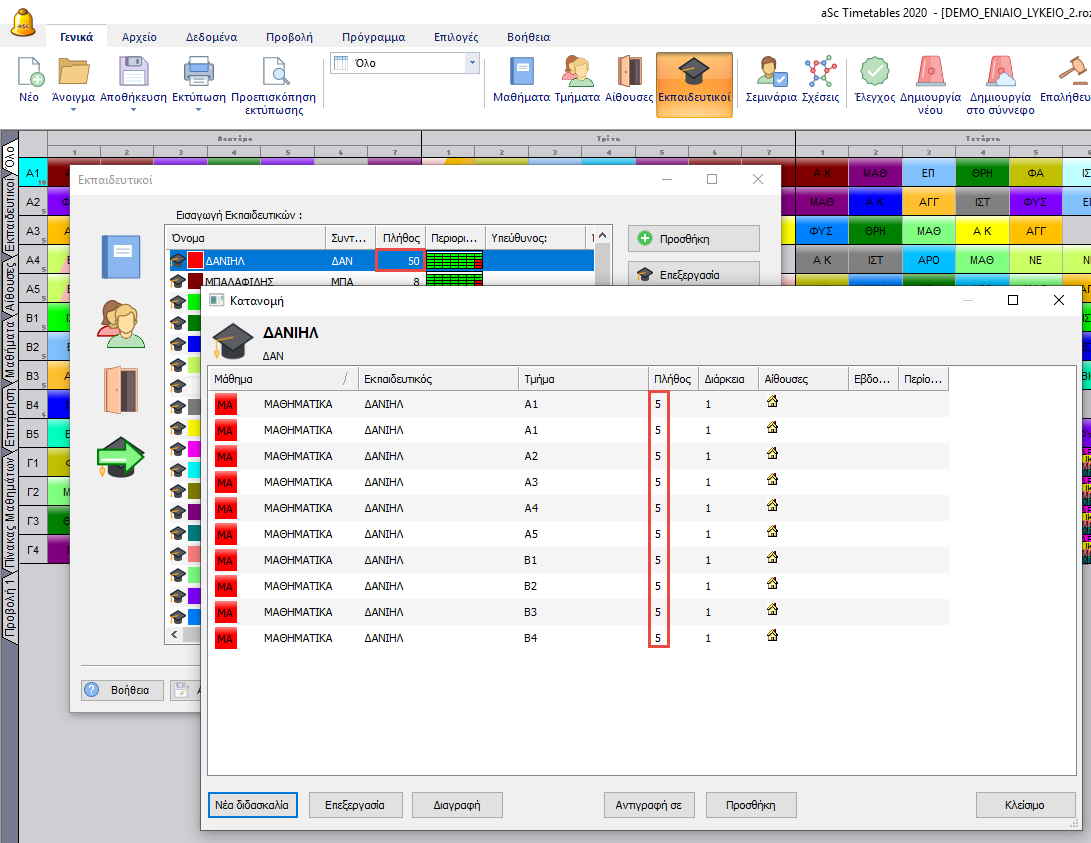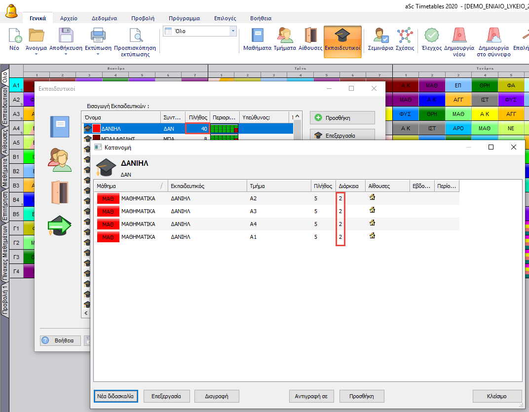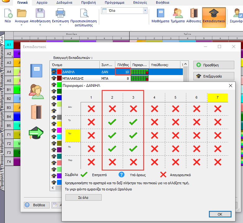 Μερικές φορές μπορεί να έχετε ορίσει περισσότερες διδασκαλίες ανά εβδομάδα για έναν εκπαιδευτικό/τμήμα/αίθουσα από τις θέσεις που έχετε κάθε εβδομάδα.