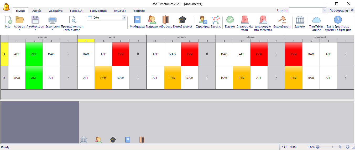 Όπως είπαμε νωρίτερα το πρόγραμμα από προεπιλογή εάν έχετε 5 διδασκαλίες την εβδομάδα τοποθετεί μία διδασκαλία ανά ημέρα.