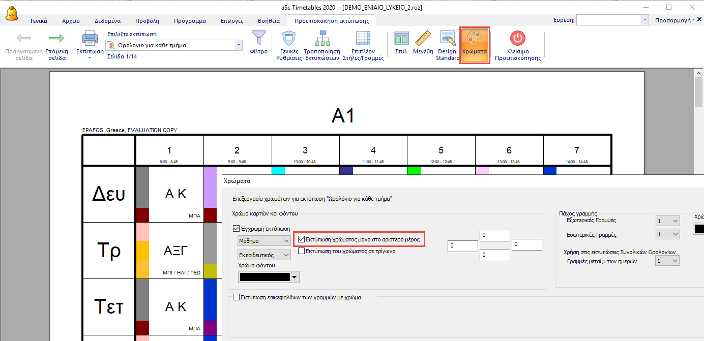 Εάν δεν θέλετε το ωρολόγιο που θα εκτυπώσετε να είναι γεμάτο με χρώμα, μπορείτε να επιλέξετε τα χρώματα να εμφανίζονται μόνο στην αριστερή μεριά των κελιών.