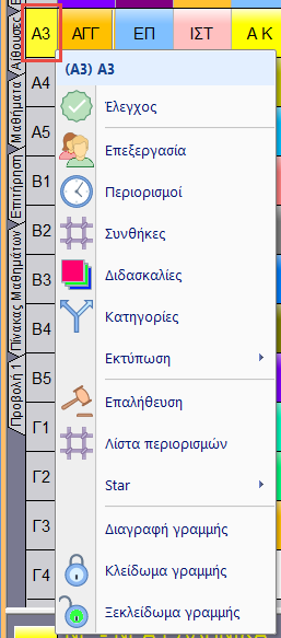 Από εδώ μπορείτε να επεξεργαστείτε τους εκπαιδευτικούς, το τμήμα, την αίθουσα και τα μαθήματα ή γρήγορα να δημιουργήσετε μόνο αυτήν την σειρά.