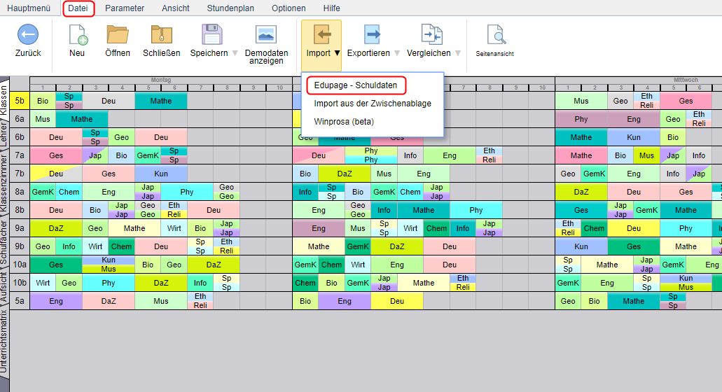 1. Klicken Sie auf Datei - Import - EduPage - Schuldaten.