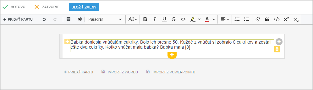 Do prvého zeleného okienka napíšte správnu odpoveď a stlačte Vložiť.
