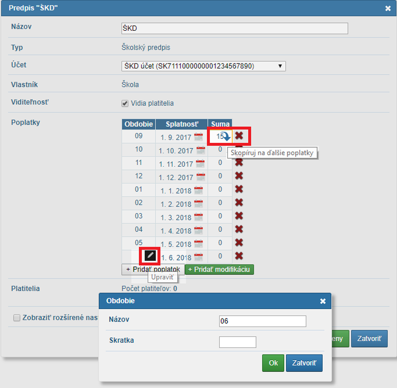 ระยะเวลา: คลิกที่สัญลักษณ์ แก้ไข ซึ่งจะทำให้หน้าต่างปรากฏขึ้น จากนั้นพิมพ์ชื่อของค่าธรรมเนียมและตัวย่อ แล้วกด "ตกลง"