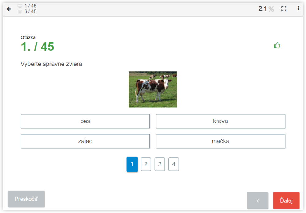 V tomto type otázky je úlohou žiaka kliknúť na správny obrázok.