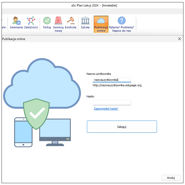 Publikowanie planu lekcji dla uczniów/rodziców