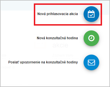 Novú prihlasovaciu akciu vytvoríte stlačením červeného tlačidla +