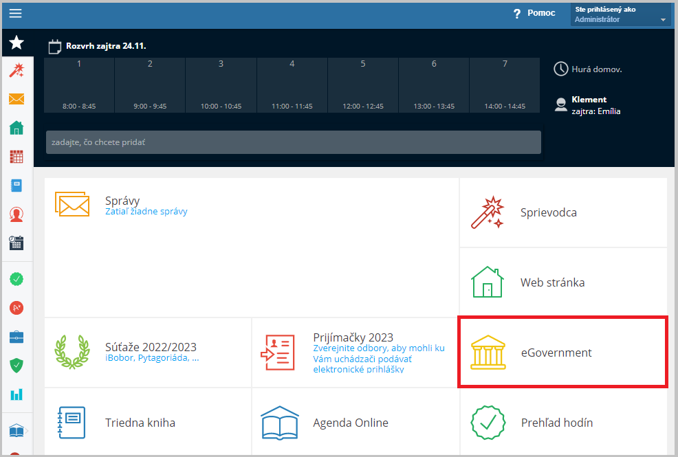 Pre správne fungovanie modulu eGovernment je potrebné prepojiť si Vašu schránku na slovensko.sk s EduPage.