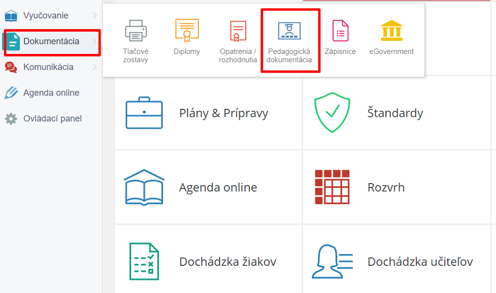 V ľavom menu zvoľte Dokumentácia/Pedagogická dokumentácia.