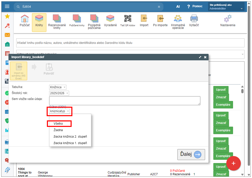 Ako naimportovať knihy do knižnice/skladu učebníc?