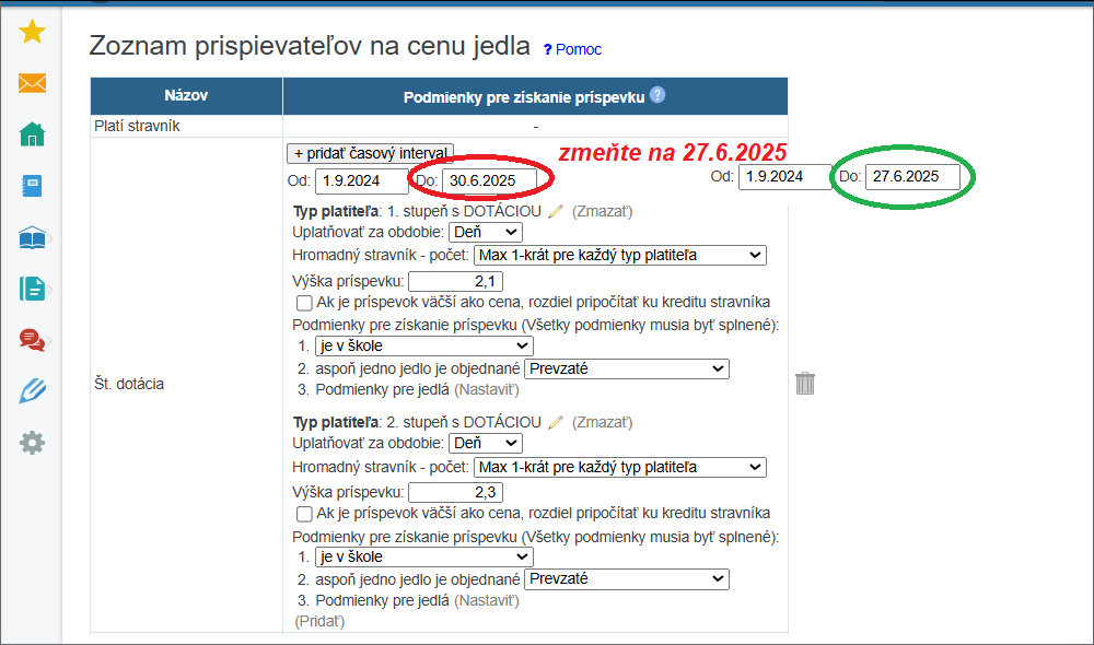 Keďže pri prechode do nového šk. roka sa nastavenia preklápajú, vrátane dátumov, tak si nezabudnite pre nový šk. rok nastaviť príspevok až do 30.6.2026.