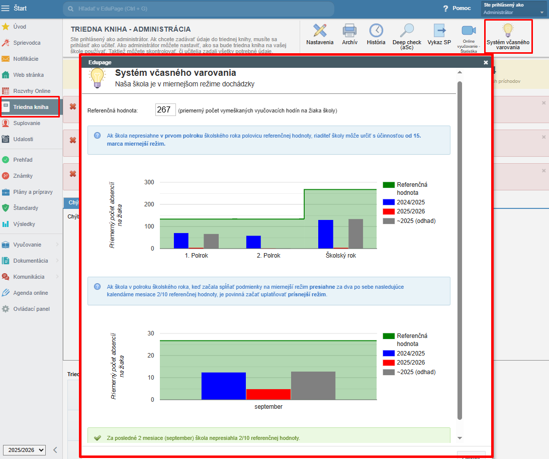 Na základe týchto údajov môže vedenie zadať, že škola prechádza do prísnejšieho alebo miernejšieho režimu ospravedlňovania: Ako zadať, že škola je v prísnejšom režime ospravedlňovania