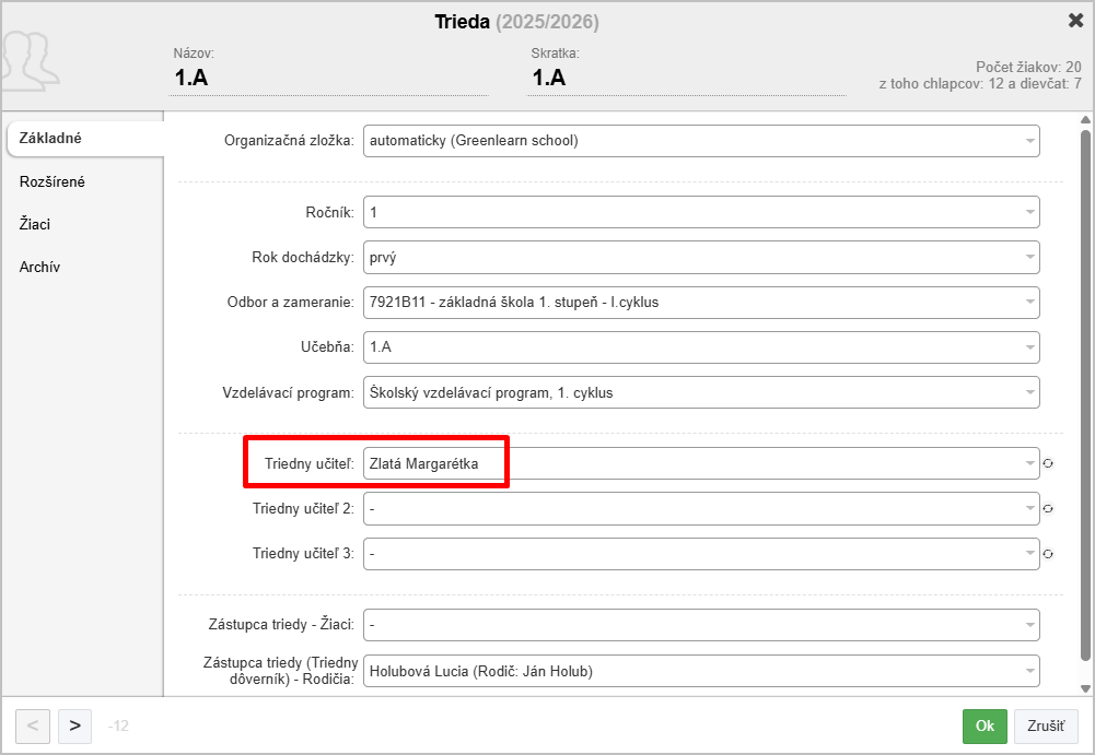 Ako nastaviť triede triedneho učiteľa?