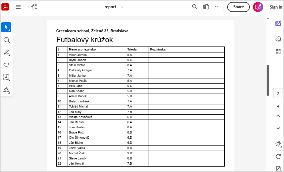 Tlačovú zostavu zoznam žiakov v krúžkoch nájdete v Dokumentácia/Tlačové zostavy/Krúžky.